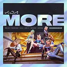 "More" (stylized in all caps) is a song by virtual girl group K/DA. The song was released on October 28, 2020, as the second single for the group's debut extended play All Out. Soyeon and Miyeon of (G)I-dle, Madison Beer, Jaira Burns, who participated in K/DA's debut song "Pop/Stars" worked together again for this single. In addition to the four champions of K/DA, Lexie Liu, who was in charge of Seraphine's voice, also participated in the song. Commercially, the song debuted on the Billboard Global 200 and Billboard Global Excl. U.S., making "More" the first virtual band song to simultaneously debut on the chart.
