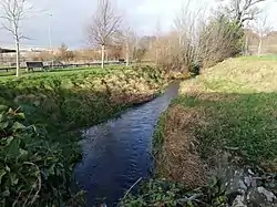 The Morell rises in Slieveroe, a few kilometres west of Blessington Lake. It flows south-to-north through Punchestown Racecourse, passing Craddockstown Golf Club, Naas Industrial Estate. It meets with a tributary stream outside Johnstown, County Kildare and is bridged by the N7 road. It continues northwards and unites with another tributary south of Palmerstown House Golf Club. The Morell then passes under the Grand Canal via an aqueduct and under the Dublin–Cork railway line, then Morell unites with the Painestown River and then passes under the Morell Bridge, where there is an Environmental Protection Agency monitoring station.[2] The Morell drains into the Liffey about 1 km south of Straffan and about 470 m downstream from the Straffan weir.