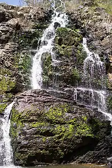 ![]() Morialta Conservation Park showing First Falls and Morialta Gorge, note scree slope at far right. | |
