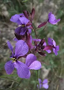 Moricandia arvensis, the purple mistress, is a species of flowering plant in the family Brassicaceae.[2] It has a broadly western Mediterranean distribution, from the Canary Islands to northern Africa including Mauritania and Chad, the Iberian Peninsula, Italy and as far as Greece, and has been introduced to France, Corsica, and Sardinia.[1] It has a mixed C3–C4 carbon fixation system.[3]