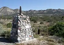 The Mormon Trail Monument was designated a California Historic Landmark (No.577). The Monument is to remember the 500 Mormon pioneers came to the San Bernardino Valley in June 1851. The Monument is near Phelan, California in San Bernardino County, California. The Monument was built in 1937 and is on California State Route 138, 3.6 Miles West of Interstate 15. In 1857 about half the Mormons were told to return to Utah during the Mormon War, also call the Utah War.[1][2][3][4][5][6] the Mormon War,[7] or the Mormon Rebellion[8][9][10][11]