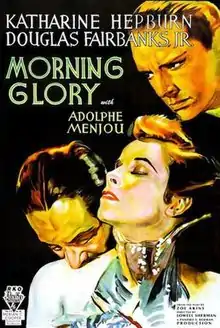 Morning Glory is a 1933 American Pre-Code drama film which tells the story of an eager would-be actress and her journey to stardom, and what she loses as a result. The picture stars Katharine Hepburn, Douglas Fairbanks Jr., and Adolphe Menjou, was adapted by Howard J. Green from a then-unproduced stage play of the same name[2] by Zoë Akins, and was directed by Lowell Sherman. Hepburn won her first Academy Award for Best Actress for this movie. Morning Glory was remade in 1958 under the title Stage Struck.