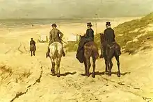 Morning Ride on the Beach (Dutch: Morgenrit langs het strand) is an 1876 painting by Dutch artist Anton Mauve from the Hague School. It shows a group of riders on the Scheveningen beach, painted in an impressionistic style. The work is now in the collection of the Rijksmuseum in Amsterdam.
