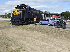 At present, the heritage railway runs between Moorooduc station and the new Mornington station, which is sited at Yuilles Road in Mornington, 100m from the site of RMSP 16. The new station was opened formally on Sunday 18 April 1999, as a platform requiring pull-push working. A run-around loop was added later. There is an intermediate stop at Tanti Park station. There are plans for the remaining section of line, between Moorooduc station and Baxter station, to be restored.[1] The Peninsula Link freeway has been constructed with an overpass across the line to allow for continued operation, and might even assist future operations to Baxter by removing significant traffic from the Moorooduc Highway level crossing.