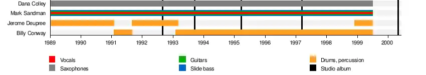 - Dana Colley – baritone sax, tenor sax, double sax, triangle, backing vocals (1989–1999)