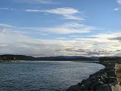Moruya River looking upstream from the breakwater on the northern head of the river.