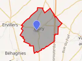 Mory is situated 13 miles (21 km) south of Arras, at the junction of the D36 and D36E roads. The A1 autoroute passes by less than a mile away