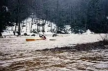 The Red Moshannon is the site of an annual canoe and kayak race known as the Red Moshannon Downriver Race which has been held on the last Saturday in March since 1967.[3] The race course covers approximately 7 miles (11 km) from the Peale bridge near the town of Grassflat to the Rt. 53 bridge and includes several class 1 and class 2 whitewater sections. The course record is 39 minutes, 29 seconds, set in 1993 by Brad Nelson.