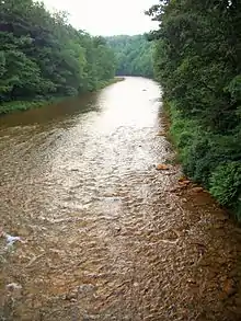 Moshannon Creek, commonly called the Red Moshannon or Red Mo, is noted for its reddish-orange rocks, banks and water caused by an iron compound that precipitates out of the acidic waters that seep into the stream from numerous old coal and clay mines in the basin.[2]