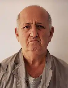 Moshe Gershuni (11 September 1936 – 22 January 2017) was an Israeli painter and sculptor. In his works, particularly in his paintings from the 1980s, he expressed a position different from the norm, commemorating The Holocaust in Israeli art. In addition, he created in his works a connection between bereavement and homoerotic sexuality, in the way he criticized society and Israeli Zionism-nationalism. He was awarded the Israel Prize for Painting for his work in 2003, but in the end it was revoked and he was deprived of receiving the prize.