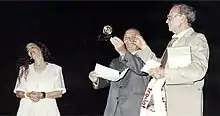 - Suzy Roimi, chairwoman of the Acha Netanya branch, gives a clock to the Acha Tel Aviv branch chairman, Asher Strulovitz, in the Jubilee ceremony of the Tel Aviv branch, which took place on 28 May 1994 at amphitheater Wahl in the Yarkon Park. On the right, Moshe Shem Tov, one of the moderators of the event. Published in the Acha journal "Mabat Shelanu", No. 17, published by autumn 1994, Page 2, by the journal editor and publisher, the journalist Yoram Bar Yosef.