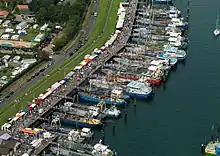 Annually, around 50,000 people[2] visit the event. They come from the close region, but also from Belgium, Germany and France. Mosseldag is known for eating mussels, a local delicacy, and other seafood. You can go freely on a trip over the Eastern Scheldt with a mussel fishing boat (or watch the fleet go by), walk along the fair and watch the tattoo and fireworks in the evening.[3]
