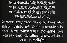 Decades later, the children are all married. The eldest son has a crude wife who disrespects the mother. The second daughter-in-law is respectful but unhealthy. The eldest daughter lives in a wealthy household with servants, but she is completely unfilial. Even when she returns home for brief visits (just to impress the neighbors, as she says), she treats the entire family with contempt. Another daughter, who is widowed, also lives away from home.