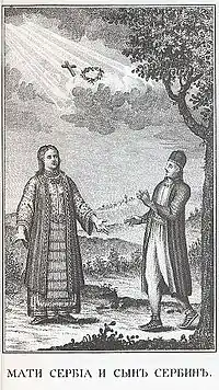 Mother Serbia (Serbian: Мајка Србија / Majka Srbija, Србија мати / Srbija mati; ), Serb Mother (Serbian: Српска мајка / Srpska majka) or Mother of All Serbs[1] (Serbian: Мајка свих Срба / Majka svih Srba), is a national personification of Serbia, which is the nation-state of Serbs. It was used as the metaphoric mother of all Serbs.[1] Serbian national myths and poems constantly invoke Mother Serbia.[2]