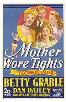 Mother Wore Tights is a 1947 Technicolor musical film starring Betty Grable and Dan Dailey as married vaudeville performers, directed by Walter Lang.[4]