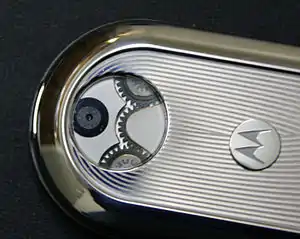 The phone featured a unique high-resolution circular display with 300dpi and an adapted circular user interfaced based on Motorola's MotoMagx operating system. One of the main selling points of the device apart from its screen was its swivel-like opening mechanism. Motorola tried to replicate the success of Razr V3 series by making a new innovative phone. The screen's opening mechanism was made possible thanks to its Swiss-made gears composed of Rockwell 50-55 hardened steel and 130 precision ball bearings. Its custom-engineered rotating mechanism is composed of more than 200 high-precision individual parts, and the gears are protected against harsh conditions with the same coatings used in high-performance racing engines. The screen of the AURA was able to display 26 Million different colours, all these things made it one of a kind phone, which never really took off.[1]
