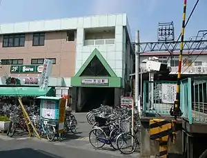 The station consists of two opposed side platforms, with an elevated station building.