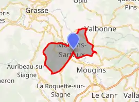 Mouans-Sartoux (known in Occitan as Moans e Sartòu or Moans e Sartol) is a commune in the Alpes-Maritimes department in southeastern France. The inhabitants are called Mouansois. The commune of Sartoux was combined with the commune of Mouans, to take the combined name of Mouans-Sartoux by order of Napoleon III on 28 March 1858.
