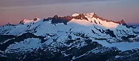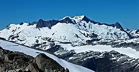 Mount Albert is a prominent 2,552-metre (8,373-foot) mountain located in the Coast Mountains of British Columbia, Canada. It is an isolated mountain situated at the head of Queens Reach of Jervis Inlet, 8 km (5.0 mi) northwest of Princess Louisa Inlet, in a remote wilderness area that few visit. Its nearest higher peak is Mount Tinniswood, 9.23 km (5.74 mi) to the north-northeast.[3] Mount Albert is set 160 km (99 mi) southeast of Mount Waddington, the highest peak of the entire Coast Mountains range. The mountain was named in 1860 by Captain Richards to honor Prince Albert of Saxe-Coburg and Gotha (1819-1861), the husband of Queen Victoria.[4] The name was officially adopted on May 6, 1924 when approved by the Geographical Names Board of Canada.[2] The first ascent was made in 1929 by Arthur Tinniswood Dalton and Percy Williams Easthope.[1]