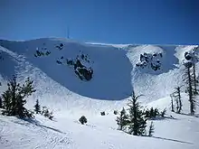 Mount Ashland ski area is located on 7,532-foot (2,296 m) Mount Ashland and features 23 trails on 200 acres (0.81 km2) served by four lifts, in addition to chute skiing in a glacial cirque called The Bowl. The mountain receives over 225" of snow annually, with a season from early December until mid-April. Half of the terrain is rated as advanced, and 15% is rated beginner.