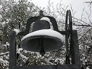 The school's bell with snow