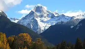Mount Bute, also known as Bute Mountain, is a 2,810-metre (9,220-foot) mountain located in the Coast Mountains of British Columbia, Canada. Situated at the southern extreme of the Homathko Icefield, Mount Bute has an impressive 800-metre sheer granite west face, and Bute Glacier dominates the north aspect. This imposing mountain is visible from Waddington Harbour at the head of Bute Inlet, in a remote wilderness area that few visit. Its nearest higher peak is Mount Grenville, 13.0 km (8.1 mi) to the east-northeast.[1] Mount Grenville is the highest summit of the icefield. Mount Bute is 63.0 km (39.1 mi) southeast of Mount Waddington, the highest peak of the entire Coast Mountains range.