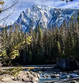 Mount Dennis is a 2,549-metre (8,363-foot) mountain summit located three kilometres south of Field in Yoho National Park, in the Park Ranges of British Columbia, Canada. Its nearest higher peak is Mount Stephen, 4.0 km (2.5 mi) to the northeast.[1] Mount Burgess is six kilometres north on the opposite side of the Kicking Horse River valley. Mount Dennis has over 1,200-metre (3,900-foot) of vertical relief above Highway 1, the Trans-Canada Highway, which traverses the northwest foot of the mountain.