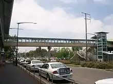 Footbridge connecting station and interchange over road