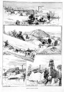 The discovery of gold in 1853[3] by Alexander Russell and George Grell saw a gold rush in 1854 as placer mining took place along All Nations Gully and West Gully. A rich reef was found at the hill crest in 1856 and an underground mine was established.[2] The Post Office opened on 1 February 1856.[4] The town population swelled to 600,[5] several companies had established mines including the Black Horse and the town was home to banks and several hotels.