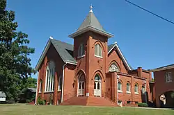 Mount Gilead Downtown Historic District is a national historic district located at Mount Gilead, Montgomery County, North Carolina. The district encompasses 25 contributing buildings in the central business district of Mount Gilead. It was developed between 1900 and 1955 and includes notable examples of Early Commercial and Romanesque Revival style architecture. Notable buildings include the Harris Building (1916), Mt. Gilead Town Hall and Annex (1939, 1955, 1960), Mt. Gilead Post Office (1910), First United Methodist Church (1910, 1960), First Baptist Church (1919), Randolph Knitting Company (1910), and Kennedy's Taxi Stand (1920s).[2]