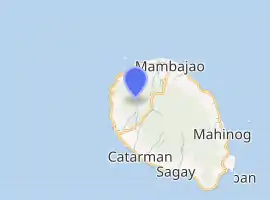 The portion of the town containing a cemetery has subsided into the sea and is now marked with a huge white cross off the coast. The settlement was relocated to where the present Catarman town center is now located. The remains of old Catarman, including the ruins of the ancient Spanish church, convent and a bell tower, are now called Gui-ob.