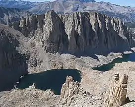 Mount Hitchcock is a 13,186-foot-elevation (4,019 meter) mountain summit located west of the crest of the Sierra Nevada mountain range in Tulare County, California.[3] It is situated in Sequoia National Park, and is two miles (3.2 km) south-southwest of Mount Whitney, 1.3 mile (2.1 km) southwest of Mount Muir, and 1.1 mile (1.8 km) west of Trail Crest. Topographic relief is significant as it rises approximately 1,500 feet (457 meters) above Hitchcock Lakes in less than one-half mile. Mt. Hitchcock ranks as the 112th highest summit in California.[2]