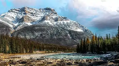 ![]() Mount Kerkeslin seen from Athabasca Falls | |