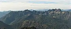 Mount Lincoln is a 5,868-foot-elevation (1,789 meter) mountain summit located in the Olympic Mountains, in Mason County of Washington state.[3] It is situated on the boundary shared by Daniel J. Evans Wilderness and Mount Skokomish Wilderness, as well as the shared common border of Olympic National Park with Olympic National Forest. Lincoln is the second-highest point on Sawtooth Ridge, and the nearest higher neighbor is Mount Cruiser, 1.1 mi (1.8 km) to the northeast.[4] Lincoln has two sub-peaks: a North Peak (5,690 ft/1,734 m), and a Southwest Peak (5,486 ft/1,672 m).[4] Flapjack Lakes lie immediately west below the north sub-peak. Topographic relief is significant as the summit rises over 5,100 feet (1,555 m) above the Staircase Ranger Station at Lake Cushman in approximately two miles. Precipitation runoff from the mountain drains into tributaries of the North Fork Skokomish River, and partly into Mildred Lakes, thence Hamma Hamma River.