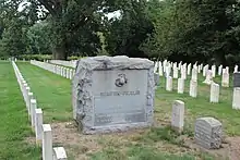 Mount Moriah was a part of the United States National Cemetery System.[19] In 1864, the United States Federal Government purchased two parcels of land within Mount Moriah Cemetery. The Soldiers' Lot on the Philadelphia side of the cemetery was purchased for soldiers who died at local military hospitals and contains 404 Union Army soldiers. The lot initially included the remains of many Confederate soldiers, however in 1885 all but two were reinterred at Philadelphia National Cemetery.[20] The Naval Plot on the Yeadon side of the cemetery is ten acres in size and was purchased for the reinterment of bodies previously buried at the U.S. Naval Home. The Naval Plot today contains 2,400 U.S. Navy officers and seaman.[10]
