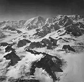 Mount Nagishlamina is an 11,068-foot (3,374 meter) glaciated mountain summit located in the Tordrillo Mountains of the Alaska Range, in the US state of Alaska.[1] The mountain is situated 90 mi (145 km) west of Anchorage, 7.4 mi (12 km) northwest of Mount Spurr, and 1.9 mi (3 km) southeast of Mount Torbert, which is the nearest higher neighbor. It is the fifth-highest peak in the Tordrillo Mountains, a subset of the Alaska Range.[2] The mountain takes its Denaʼina language name from the Nagishlamina River which drains the west side of the peak.[4][5] Mount Nagishlamina's name was in use by local mountaineers since the 1970s, and was officially adopted in 1999 by the U.S. Board on Geographic Names.[1] This geographic feature was likely the highest unclimbed peak in the United States at the time of its first ascent in 1989 by Dave Johnston.[1][6]