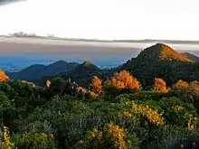 Mount Pirongia is an extinct stratovolcano located in the Waikato region of New Zealand's North Island. It rises to 959 metres[1] and is the highest peak in the Waikato region. It was active in the late Pliocene and early Pleistocene times. Pirongia's many peaks are basaltic cones created by successive volcanic eruptions about 2.5 million years ago.[2] In the adjacent picture, the characteristic profile of the mountain can be seen, along with a prominent accessory cone to the right (on the northern flank).