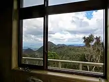 There are numerous tracks to the summit.[6] Mahaukura - Tirohanga Circuit (8–11 hours) is a longer distance but with a gradual climb. This track is well signposted with bright orange plastic markers, but considered difficult. It leads through many steep sections but gives excellent views from Wharauroa lookout, Mahaukura peak (899 m) and Tirohanga peak. In winter and after rain the track becomes muddy and slippery. There are many narrow sections with a tangle of tree roots and rocks. There is a lookout platform on Pirongia summit from where it is possible to spot Mount Taranaki summit and Mount Ruapehu summit on a clear day (see photo below). On the west side there are Kawhia and Raglan harbours.