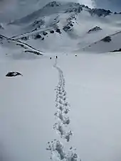 The summer climbing season runs from late April until October, although many attempts are made in the winter.[4] In winter, Sargents Ridge and Casaval Ridge, to the east and west of Avalanche Gulch,[38] respectively, become the most traveled routes, to avoid avalanche danger. Mount Shasta is also a popular destination for backcountry skiing. Many of the climbing routes can be descended by experienced skiers, and there are numerous lower-angled areas around the base of the mountain.[4]