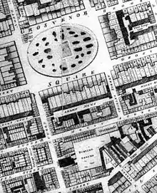 The land was originally sold by Sir Richard Grosvenor, 4th Bart. to the Commission for Building Fifty New Churches in 1723 as part of his development of the area around Mount Street, to serve as a burial ground for the parish church, St. George's, located in Hanover Square.[8] Beside the burial ground, on South Audley Street, was planned the Grosvenor Chapel, but this was not built until 7 years after the burial ground was laid out, in 1730.