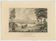 The Awabakal people called the mountain Warrawelong and it is a significant site for the Awabakal.[3] It provides a vantage point to view all Awabakal lands and is an important teaching place. Sacred ceremonies are known to have taken place there.[5] The shape of the mountain is said to look like a wedge-tailed eagle and is the setting for a cautionary tale concerning the fate of two children at the hands of a monster called Puttikin.[3]