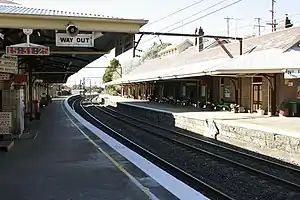 The Platform 2 building dates from 1868 with a railway refreshment room added in 1884. The Platform 1 building dates from 1911 when the line was duplicated. An extensive yard including a locomotive depot existed west of the station.[4]