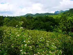 The mountain range consists of two prominent extinct volcanoes, namely Mount Palay-Palay at 688 metres (2,257 ft) high and Mount Mataas-na-Gulod, 642 metres (2,106 ft) high.[5] Mount Palay-Palay, located in the park's northern portion, covers sixty percent of the protected area.[3] A major attraction in the park is Mount Pico de Loro at the southern portion which was named for the towering formation at its summit which resembles a parrot's beak.[6] It is also the highest mountain in Cavite at 688 metres (2,257 ft) [5] where hikers are rewarded with scenic views of the Manila Bay and its islands and South China Sea, as well as the coves and beaches of Nasugbu including Mounts Batulao and Carilao (Talamitam). Other notable peaks in the mountain range include Mount Marami, Mount Buntis and Mount Nagpatong where the Filipino revolutionary Andres Bonifacio was executed in 1897,[7] and Mounts Kalanggaman and Dos Picos at the center of the protected landscape.[5]