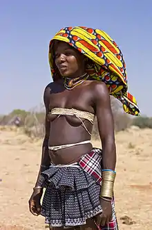 The Mucubal people (also Mucubai, Mucabale or Mugubale) are a subgroup of the Herero people in southern Angola.[1] Like the Masai, to whom they are said to be related, they are semi-nomadic, depending on cattle and agriculture.[1] Their territory is in the Namib Desert, bounded by the Serra da Chela mountains to the north and Cunene River to the south.[1][2]