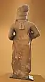 A statue of Mudgarpani ("Mace-holder") Yaksha from Bharana Kalan, visible in the Mathura Museum, is dated to circa 100 BCE.[11] It was discovered in Bharana Kalan, 32 kilometers northwest of Mathura.[11] In the right hand he holds a mudgar mace, and in the left hand he used to hold the figure of a small standing devotee or child joining hands in prayer.[12][2][6]