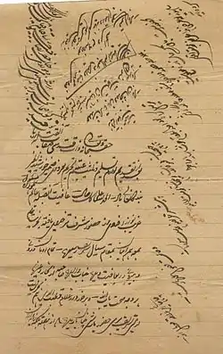 Sir Muhammad Iqbal criticised the pirs of Punjab in his poem (پنچاب کے پيرزادوں سے) "To The Punjab Pirs". In this poem he imagined that he visited the tomb of reformer Shaykh Ahmad Sirhindi and asked him for the saints' gift and blessings. The spirit of saint replied that God's people i.e., Pirs and Sufis have no portion in this land of five rivers i.e., Punjab, where lordly tassel or turban sprouts from monkish cap. Pirs and "Sajjada nashins, claimed to be the descendants of the Sufi, 'saints', intermediaries between the Faithful and their God, and this cut against the grain of Islamic orthodoxy. As beneficiaries, in cash and in kind, of their special religious status, these sajjada nashins had become men of local standing in their own right."[18] In the Punjab, the sajjada nashin or pir families were not so rich in terms of land as the great land lords of Punjab but these sajjada nashin or pir families exerted great political and religious influence over the people. The British could not administer the area without their help and no political party could win the election without their help.[19] Sir Muhammad Iqbal denounced these pirs in one of his poems as merely pale reflections of the great medieval Sufi saints, "Crows" occupying the "Eagle nests" of Punjab's greatest religious men.[20][21] While criticising this role of pirs of Punjab, he says:[22]