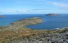 Muldoanich stands about 4 kilometres (2+1⁄2 mi) southeast of Castlebay, the main port on the island of Barra, and it is a prominent landmark for the approaching ferry and other craft. It has no level ground. There are no census records, but the southern headland of Vanish (meaning "headland of the house" or "sacred place" in Gaelic) may indicate habitation at some time in the past.[3]