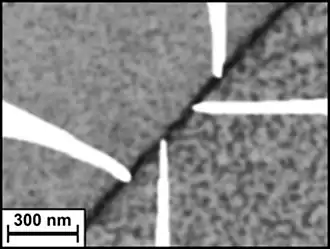 - Nägelein, A; Liborius, L; Steidl, M; Blumberg, C; Kleinschmidt, P; Poloczek, A & Hannappel, T (2017). "Comparative analysis on resistance profiling along tapered semiconductor nanowires: multi-tip technique versus transmission line method". Journal of Physics: Condensed Matter. 29 (39): 394007. doi:10.1088/1361-648X/aa801e. PMID 28714857.