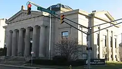 Numerous civic developments also occurred as a result of the city's growth during the 1870s, 1880s, and 1890s, when Muncie citizens built a new city hall, a new public library, and a new high school. The city's gasworks also began operations in the late 1870s.[20] The Muncie Star was founded in 1899 and the Muncie Evening Press was founded in 1905.[14][31] A new public library, which was a Carnegie library project, was dedicated on January 1, 1904, and served as the main branch of the city's public library system.[32]