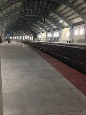Mundakakanniamman Koil station is the 18th MRTS station to be operational.[1] Work on the station began in 2002, at an initial estimated cost of ₹ 85.5 million.[2] The station has been built as an additional one in the first phase of the Chennai MRTS network completed much earlier. Initially slated to be completed in April 2009 at a cost of ₹ 350 million,[3] the construction was delayed due to land-acquisition issues. The next deadline was set as 2012 and again it was delayed due to getting approval for the name. The cost of construction was ₹ 100 million.[4][5] The station was opened to public on 14 May 2014.